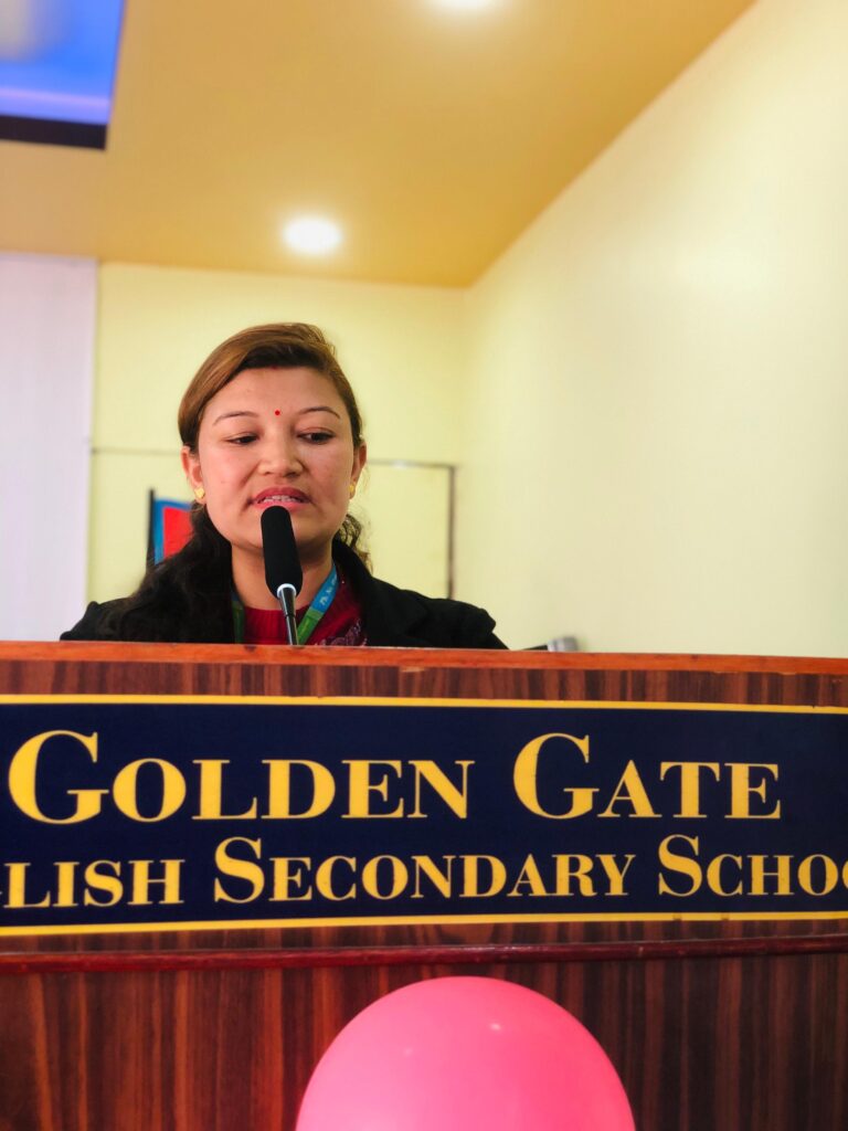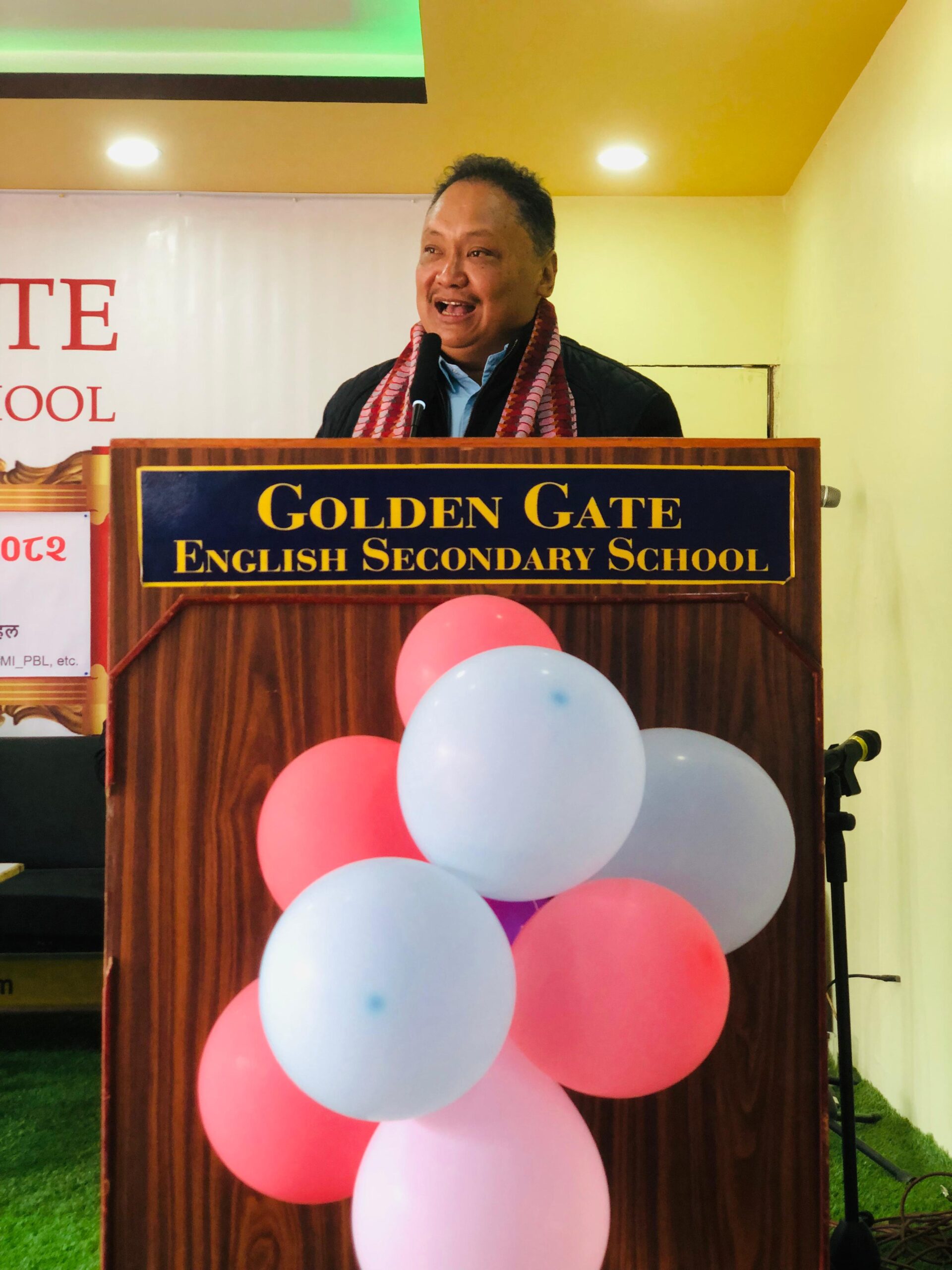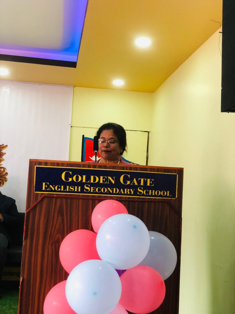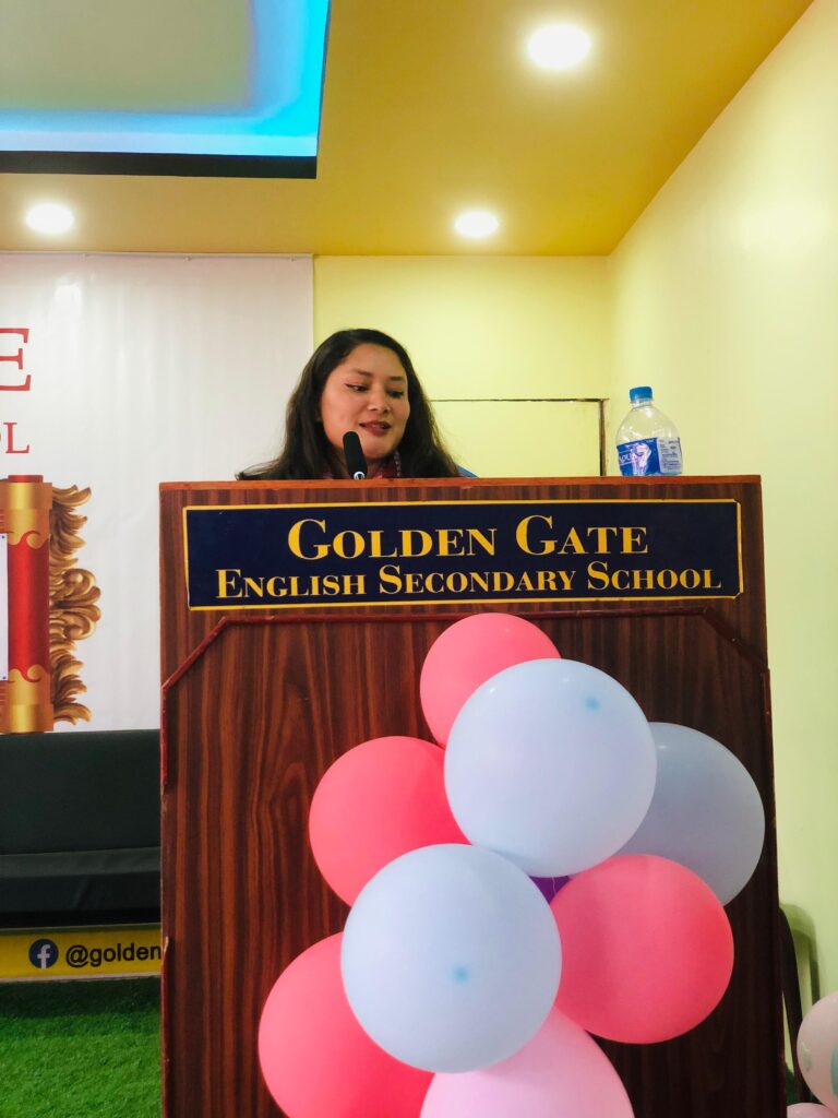विद्यालयका प्रिन्सिपल तथा कोफाउन्डर सिङ्ग लामाले गोल्डेन गेटको ३९ वर्षे शैक्षिक यात्राको संक्षिप्त चित्र प्रस्तुत गर्दै लर्निङ कर्भ सहजीकरण कक्षा, एमआईपिबिएल, फोनिक्स रिडिङ, गोल्डेन स्टार्स, विद्यार्थी प्रोफाइलिङ लगायतका अभ्यासले विद्यार्थीलाई परीक्षाका लागि होइन, जीवनका लागि तयार पार्ने लक्ष्य राखेको स्पष्ट पारे ।